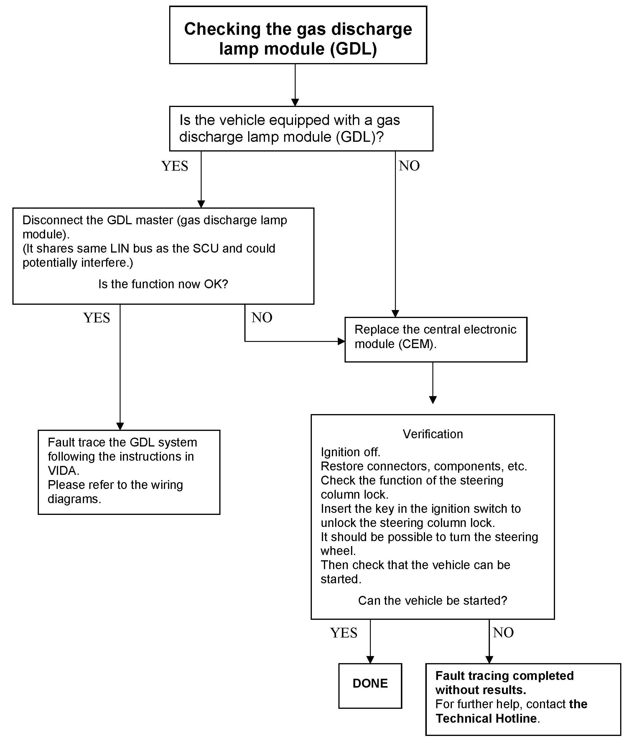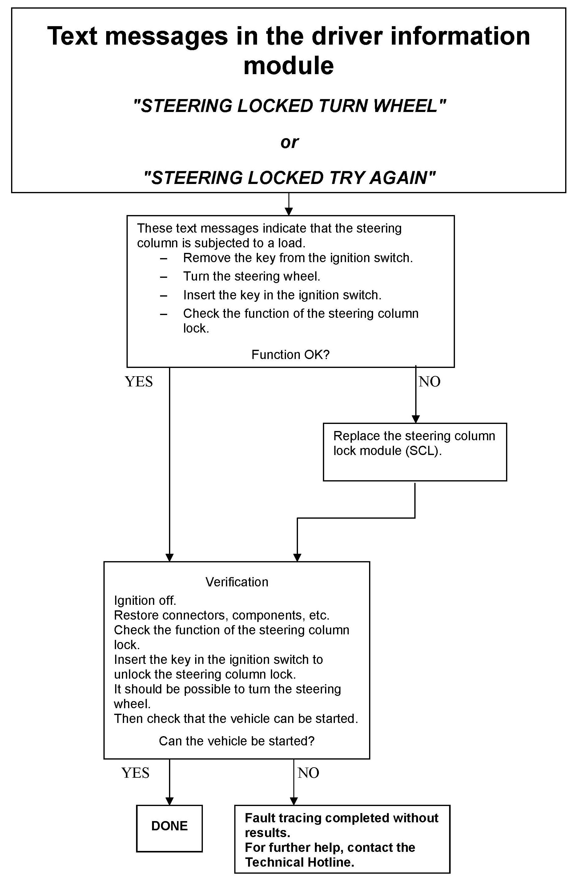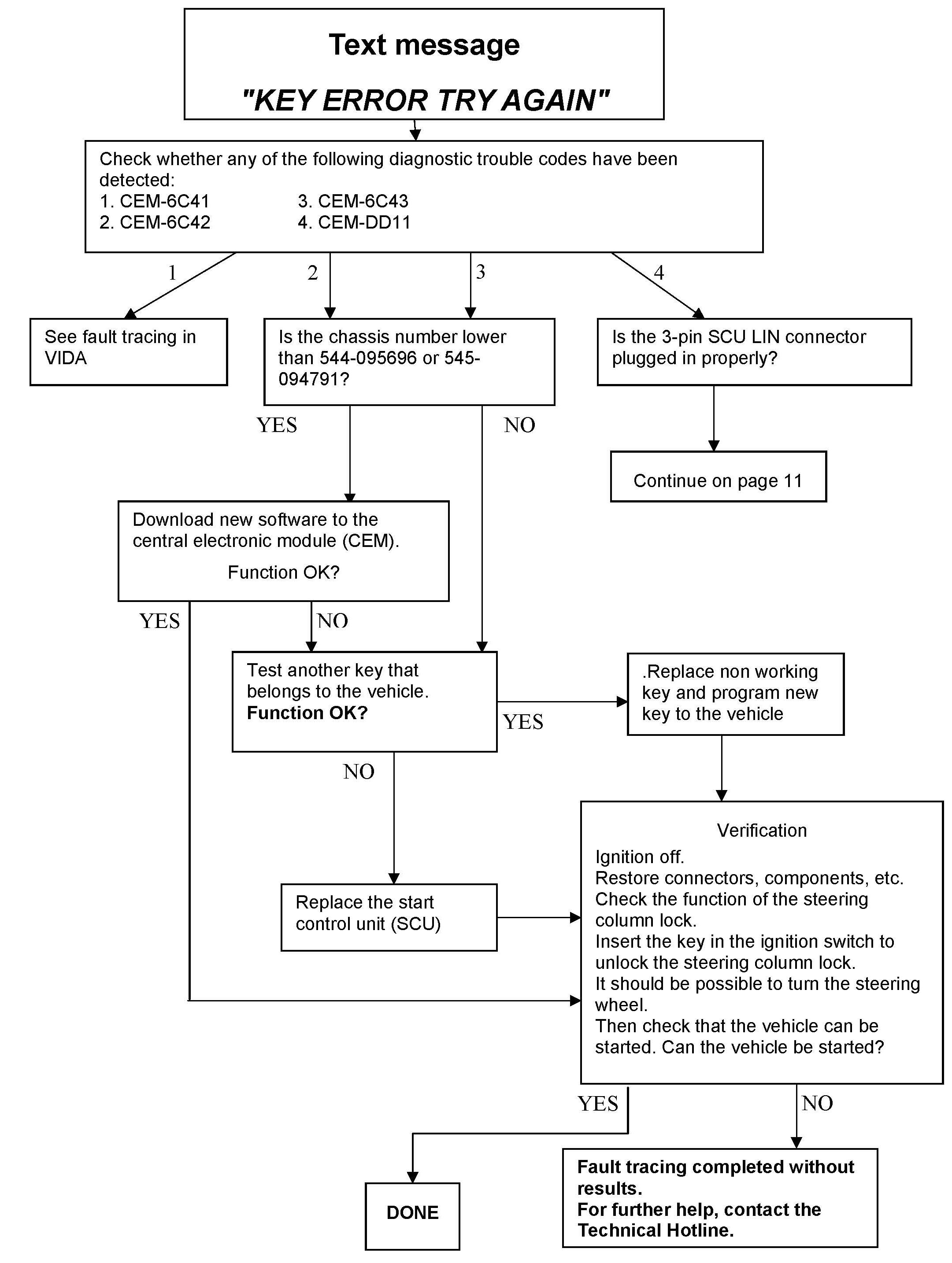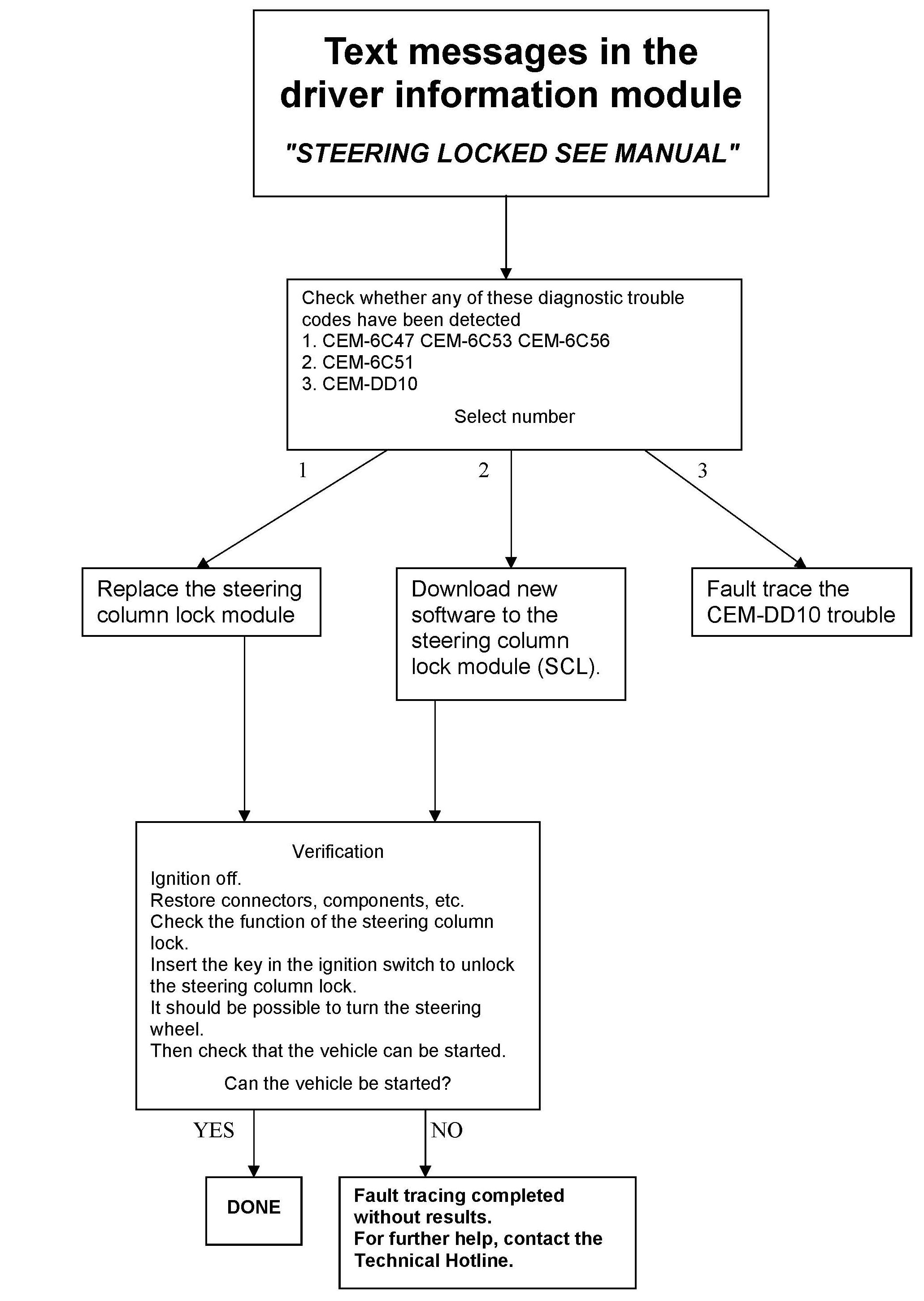 The start validation on S401V50 cars is complex and this TNN has been created to assist in fault tracing the system. These fault tracing flowcharts should be used in case of reported intermittent or permanent NO CRANK / NO START symptoms on 5401V50 and New C70 cars.