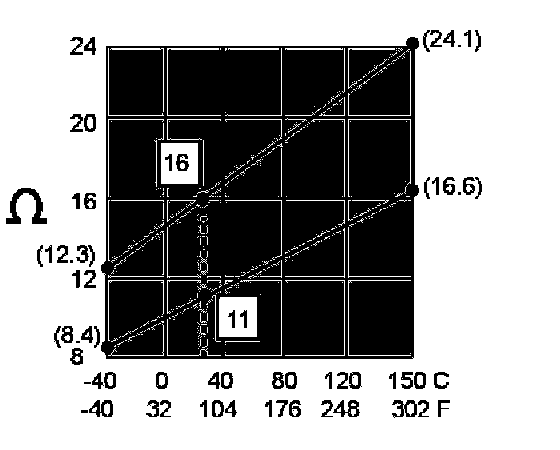 For other values, see diagram. When taking readings at temperatures other than +20 �C, a control reading must be taken at +20 �C. This is done to check whether the resistance is correct or not.