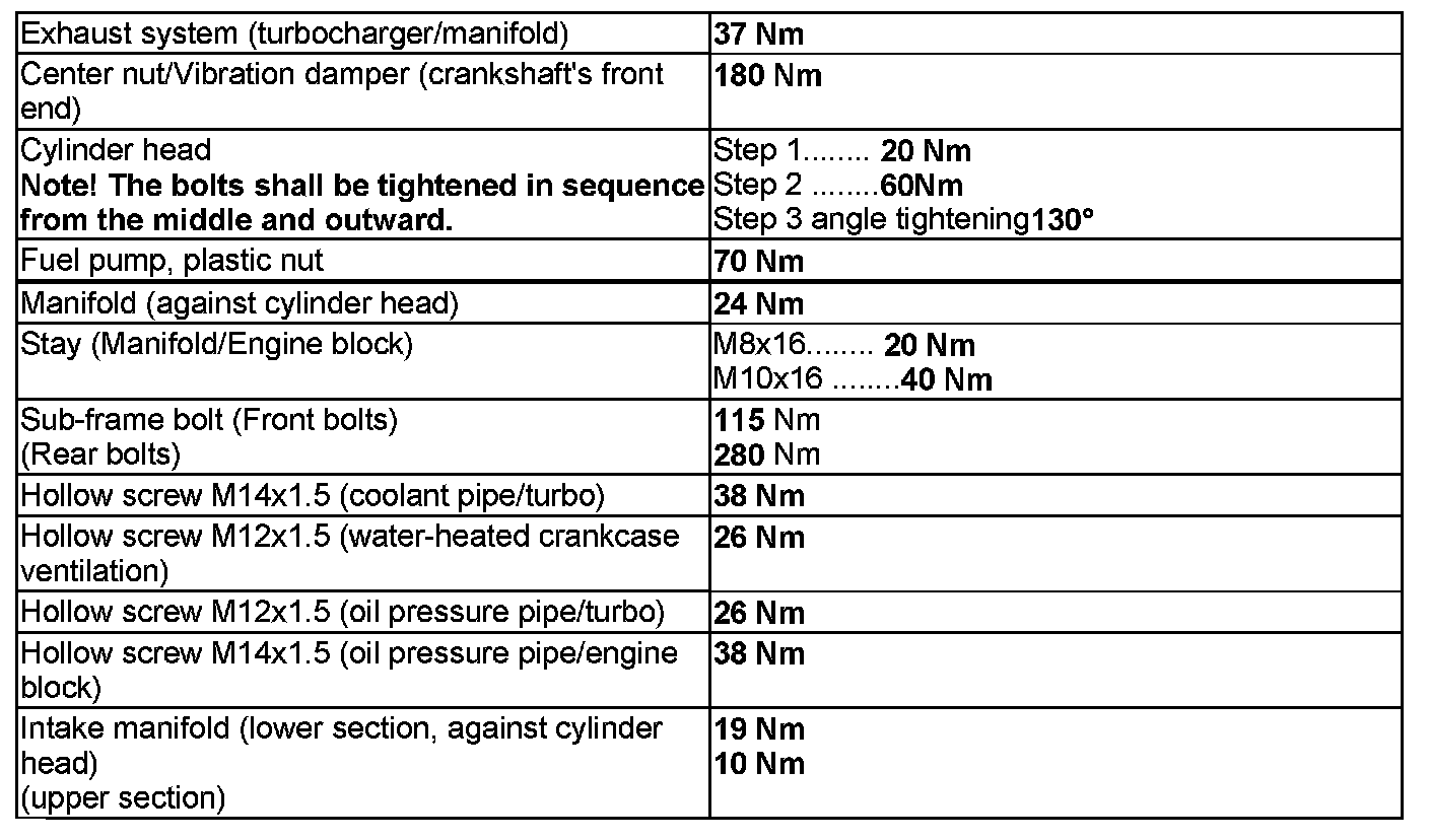 Always use new bolts and nuts when angle tightening. Any exceptions to this rule will be indicated in the method.