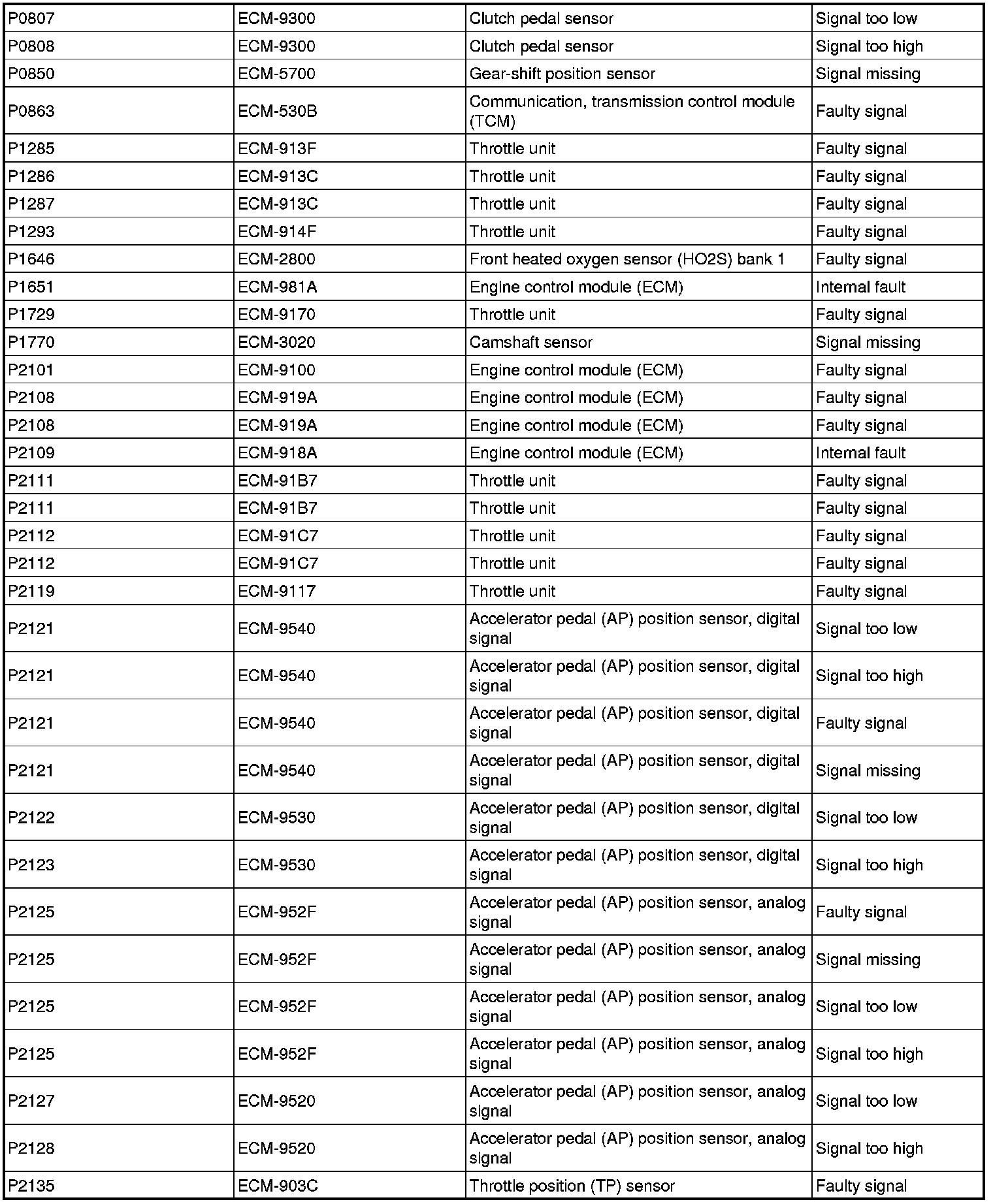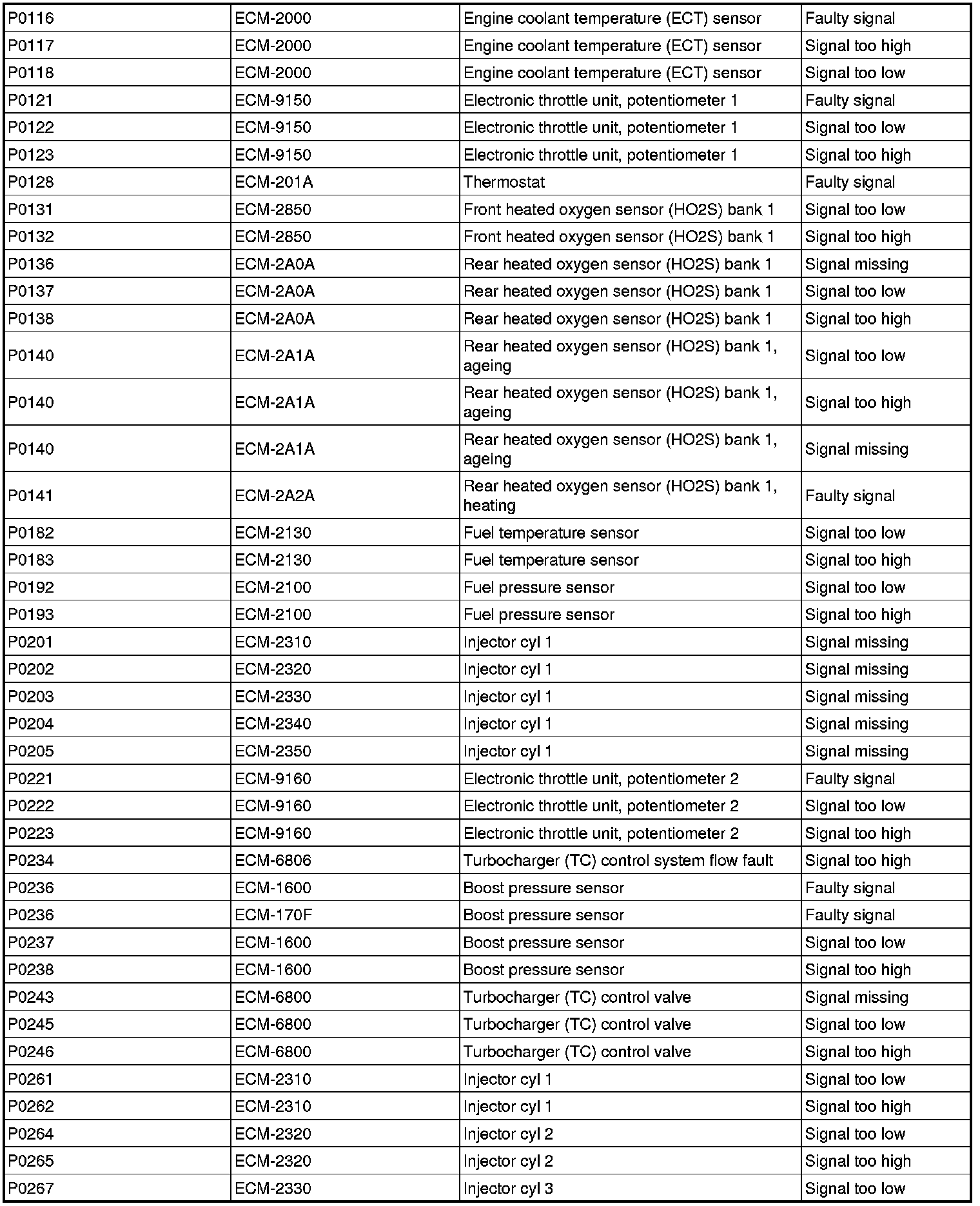 Conversion table standardized diagnostic trouble codes (DTCs)/Volvo diagnostic trouble codes (DTCs)