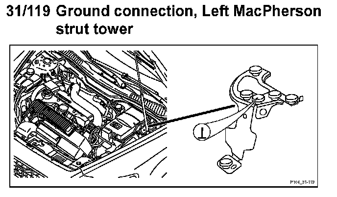 31/119 Ground Connection, Left MacPherson Strut Tower: