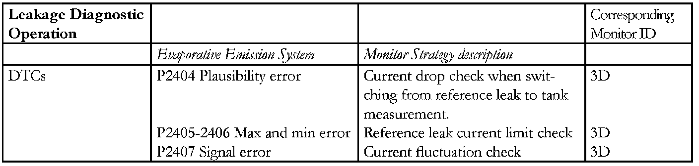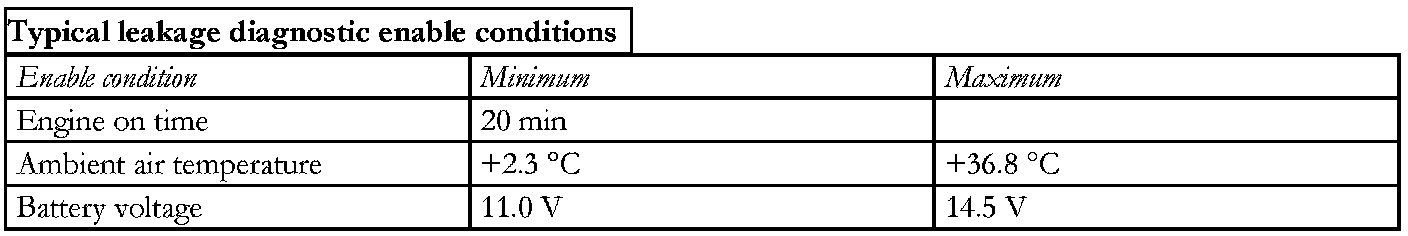 With the following errors the leakage detection monitoring can not be performed. These errors will therefore disable the leakage detection monitoring and the MIL (and the corresponding fault code) will be set. The disable conditions are: