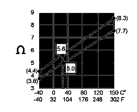 For other values, see diagram. When taking readings at temperatures other than +20 �C, a control reading must be taken at +20 �C. This is done to check whether the resistance is correct or not.