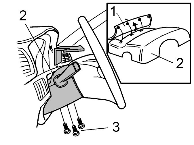 - upper steering wheel cover (2), by disconnecting it at the steering wheel, lifting it and pulling it outwards.