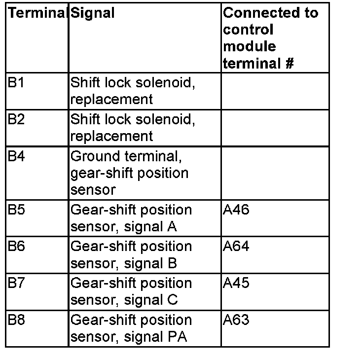 Control module terminals #A1-#A60 correspond to terminals #A1-#A60 on the breakout box, terminals #A61-#A70 correspond to terminals #B1-#B10 on the breakout box