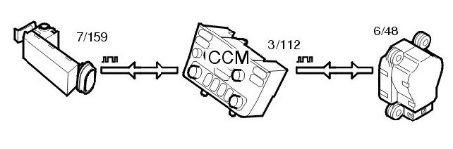 When the switch for the folding door mirrors is activated, information is transmitted by the climate control module (CCM) to the driver's door module (3/126) and the passenger door module (PDM) (3/127) via the Controller area network (CAN).