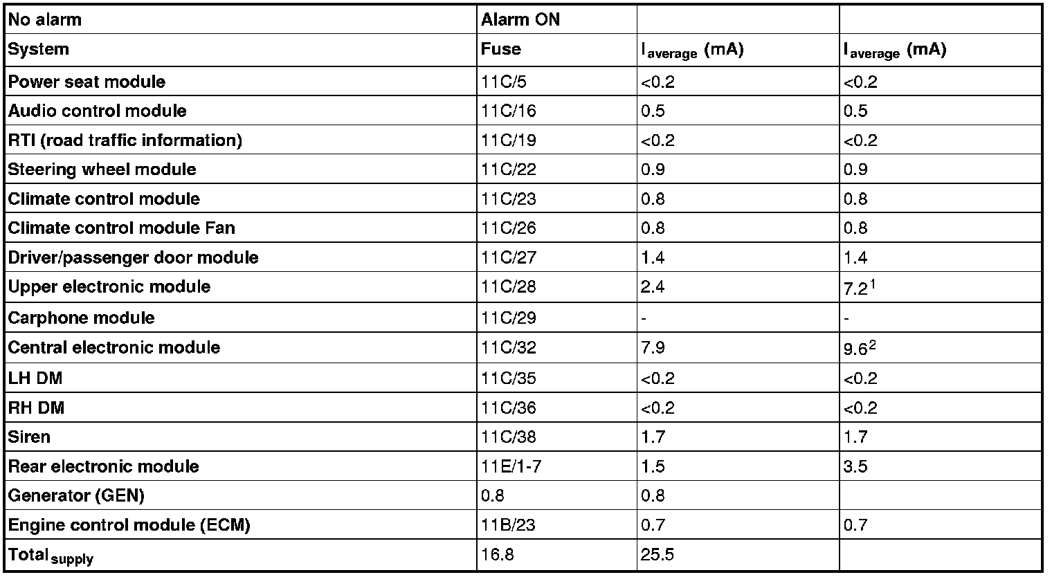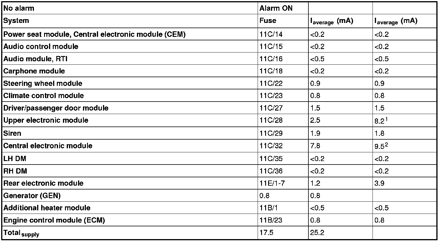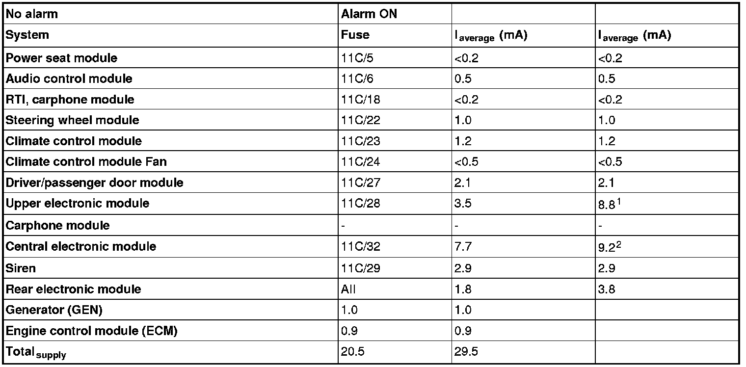 2The value may vary. The current for the siren also passes through fuse 11C/32.