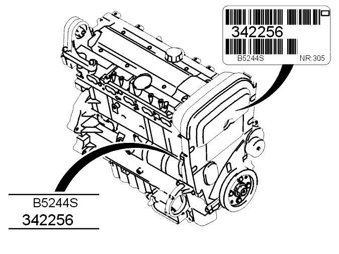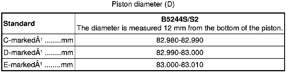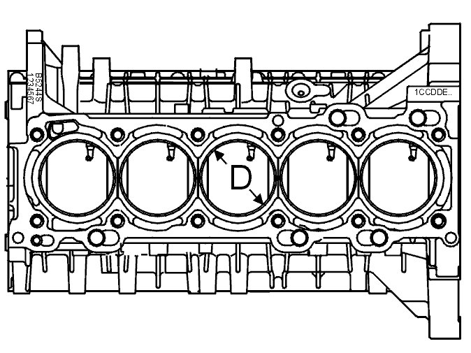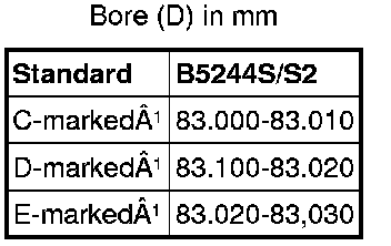 The bore classification is stamped on top of the engine block. For example: 1CCDDE is read as cyl 1=C, cyl 2=C, cyl 3=D, cyl 4=D, cyl 5=E.