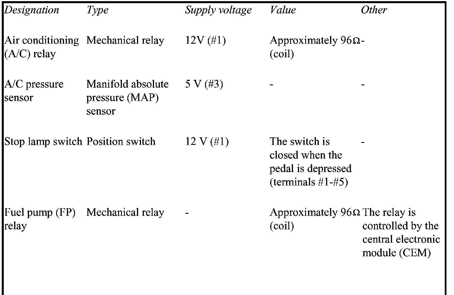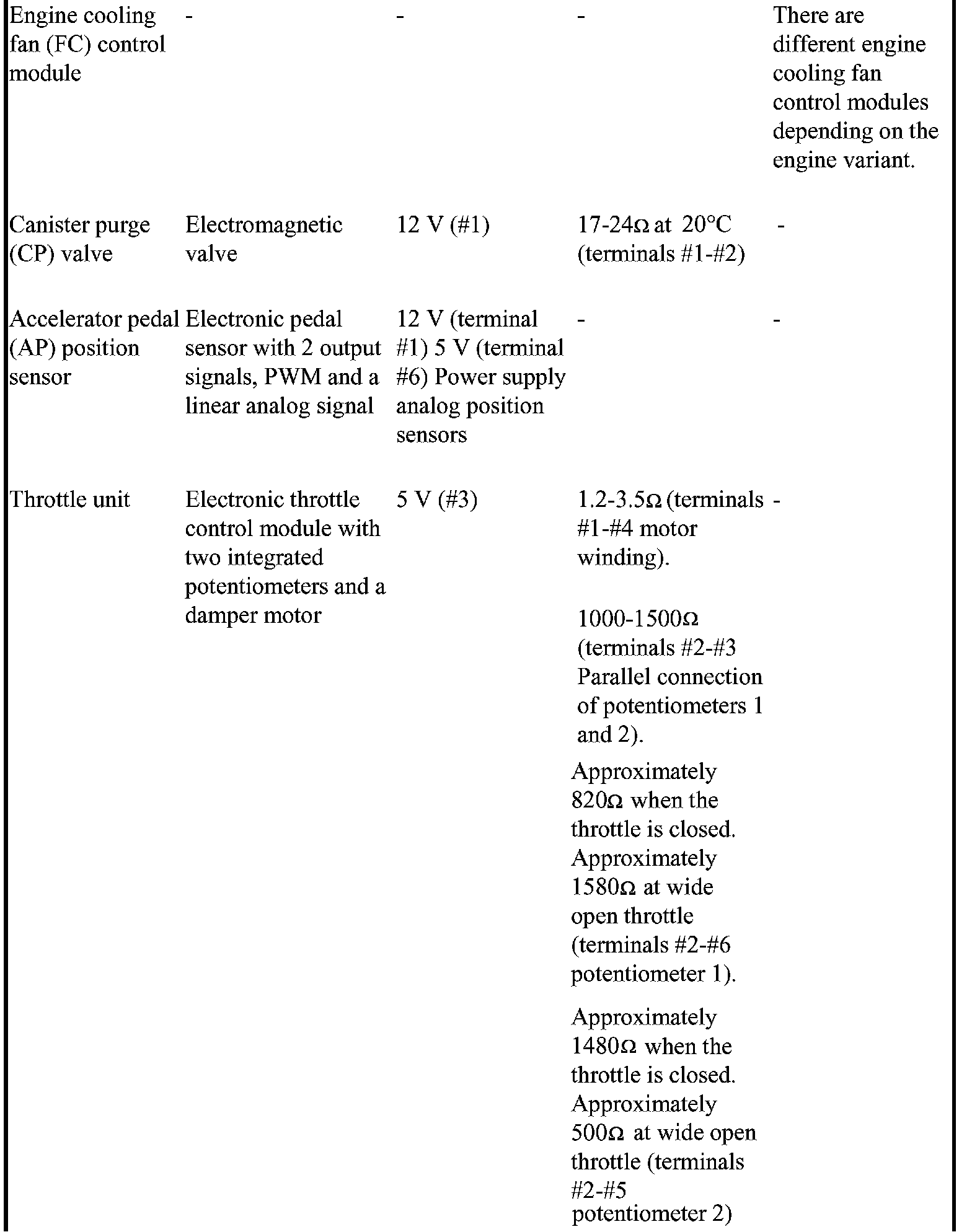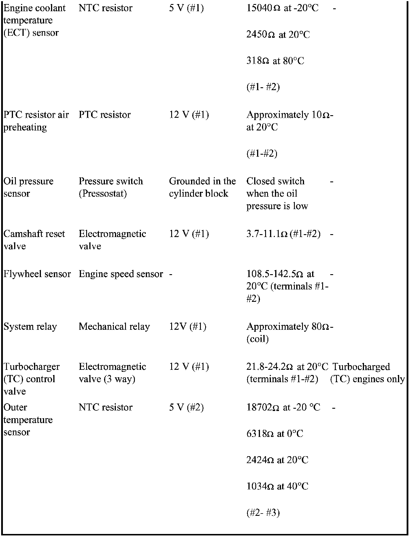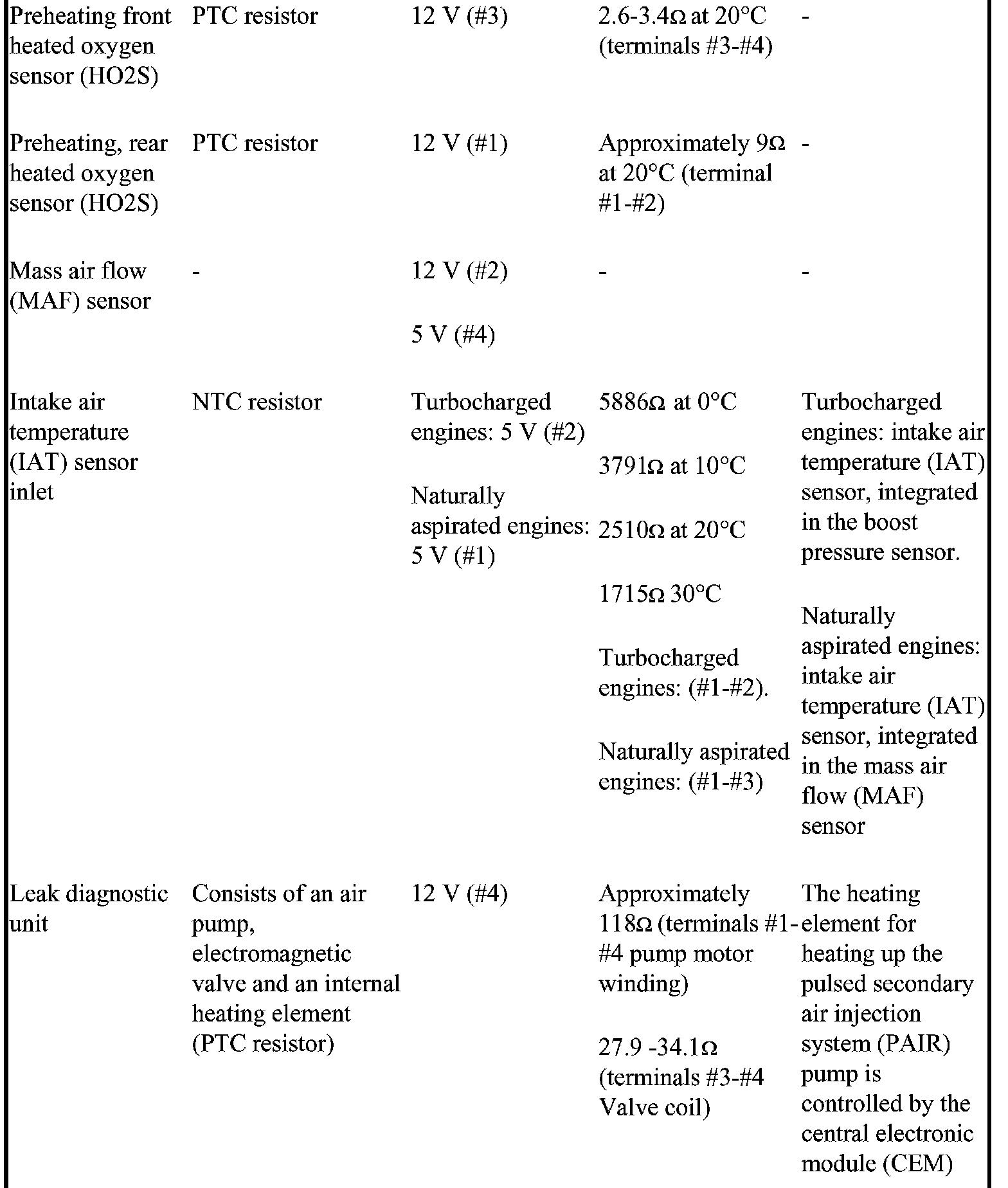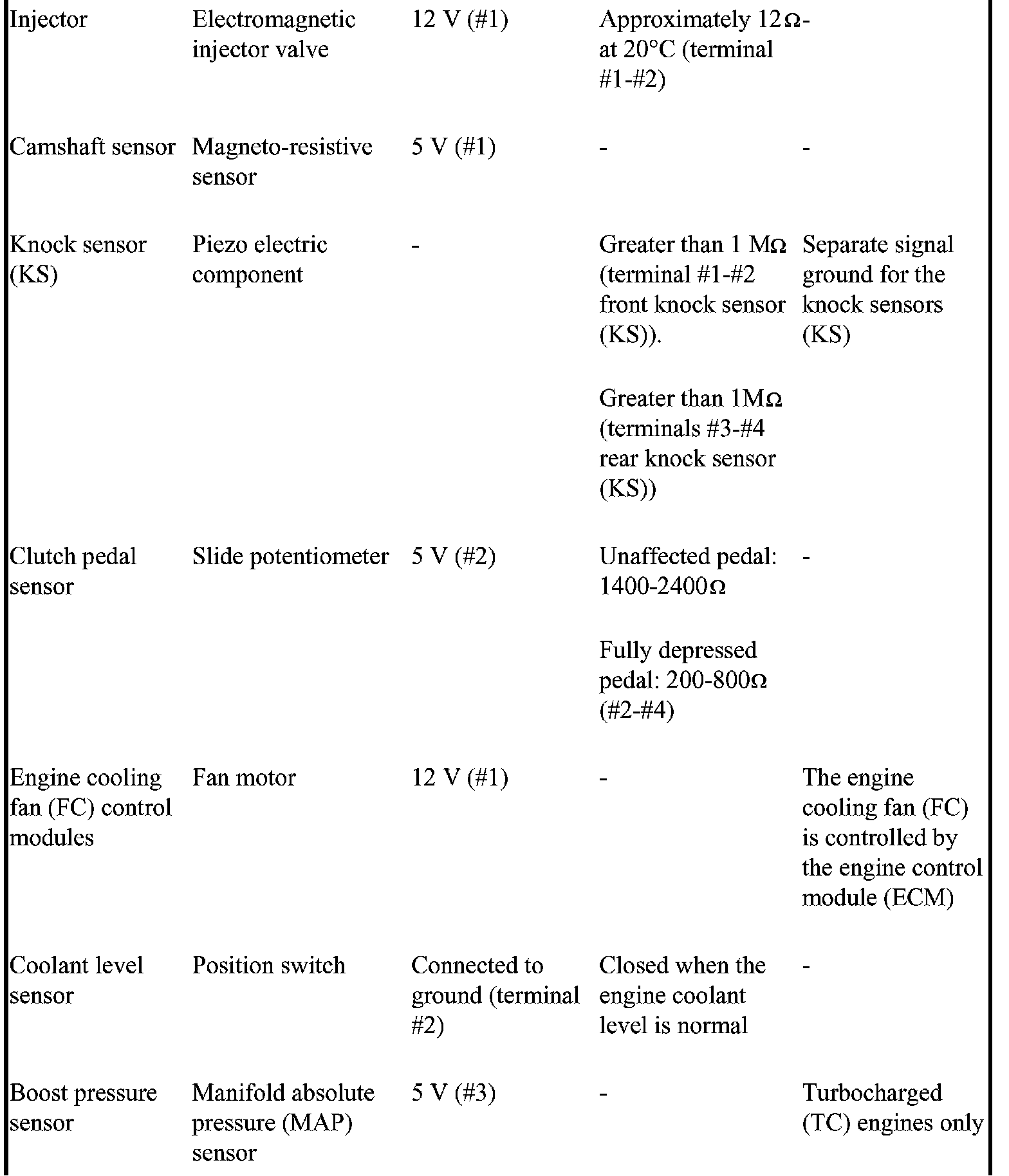 The component specification gives the value of the component when the connector is disconnected. Where no value is given, it is not possible to measure a relevant value at the component.