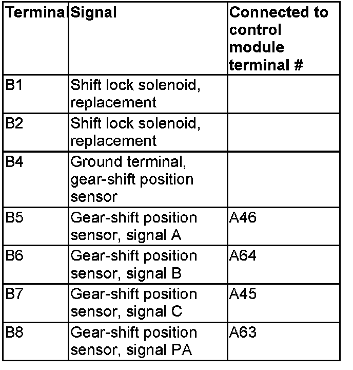 Connector B, transmission