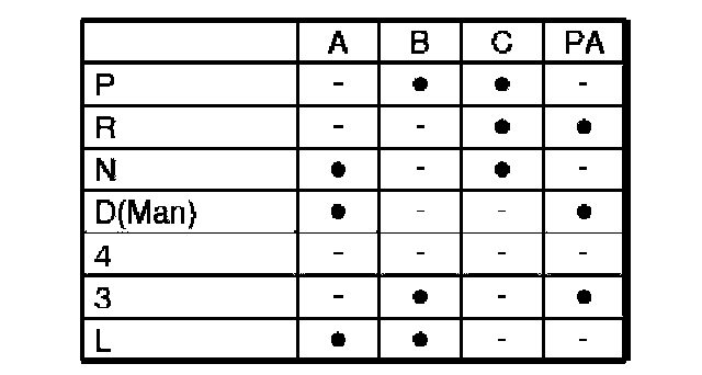 The gear-shift position sensor is mounted on the top of the transmission housing, on the gear shift linkage rod. The gear selector contains a Park/Neutral Position (PNP) switch and connectors which inform the Transmission Control Module (TCM) about which gear is selected and if the back-up gear is selected so that the reversing lamps can be lit. The gearshift position sensor is a position switch which is supplied via +15. A number of trailing contacts supply power to the sensor outputs. The combination of pins A, B, C and PA indicate the current gear selector position. The trailing contacts can either be closed or open.