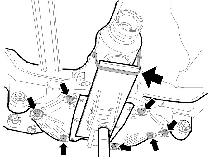 - the screws for the front mountings on the sub-frame. Install the screws through the brackets. See Tightening torque [1][2]Mechanical Specifications.