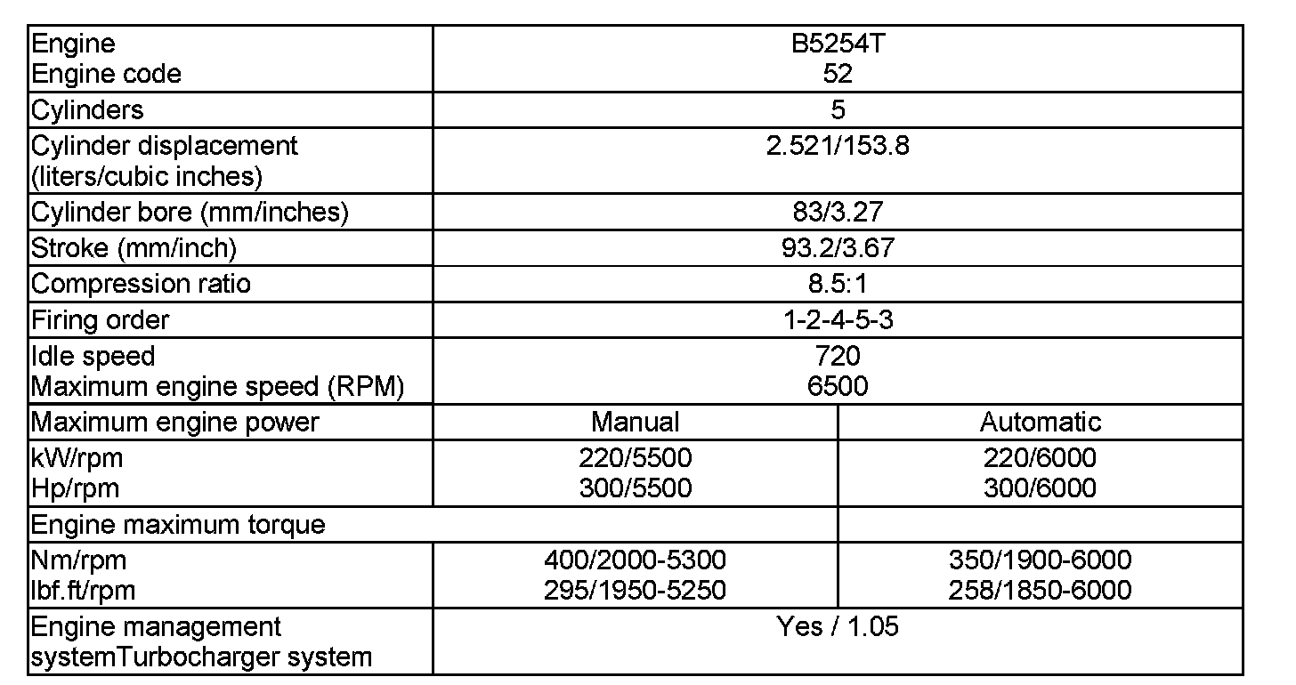 S60R AWD L5-2.5L Turbo VIN 52 B5254T4