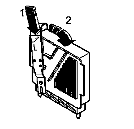 Insert tool 999 5722 (1) in the car around the control module. Move the upper section of the tool backwards as far as it will go (2). Raise the tool.