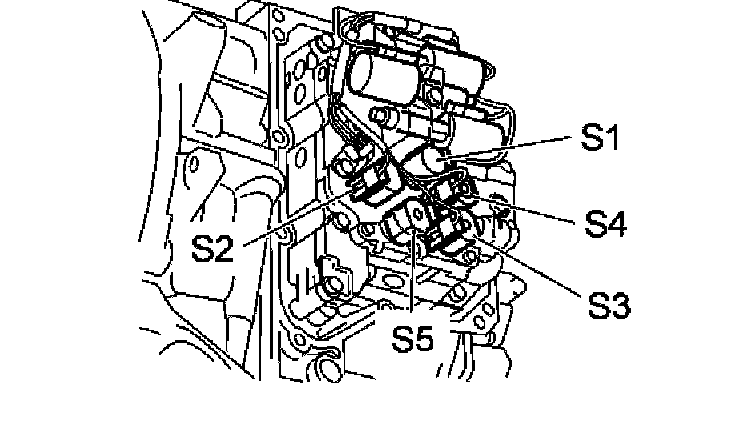 The shift solenoids S1, S2, S3, S4 and S5 are positioned in the valve body in the transmission control system, which is mounted on the front edge of the transmission. The shift solenoids (on/off type), consist of an electrical coil which controls a hydraulic valve. The solenoids are supplied with 12 V via the transmission control module (TCM) and grounded in the control system. The shift solenoids control shifting and the transmission control module (TCM) determines which gear is to be used by activating them in different patterns. There is a diagnostic for the shift solenoids.