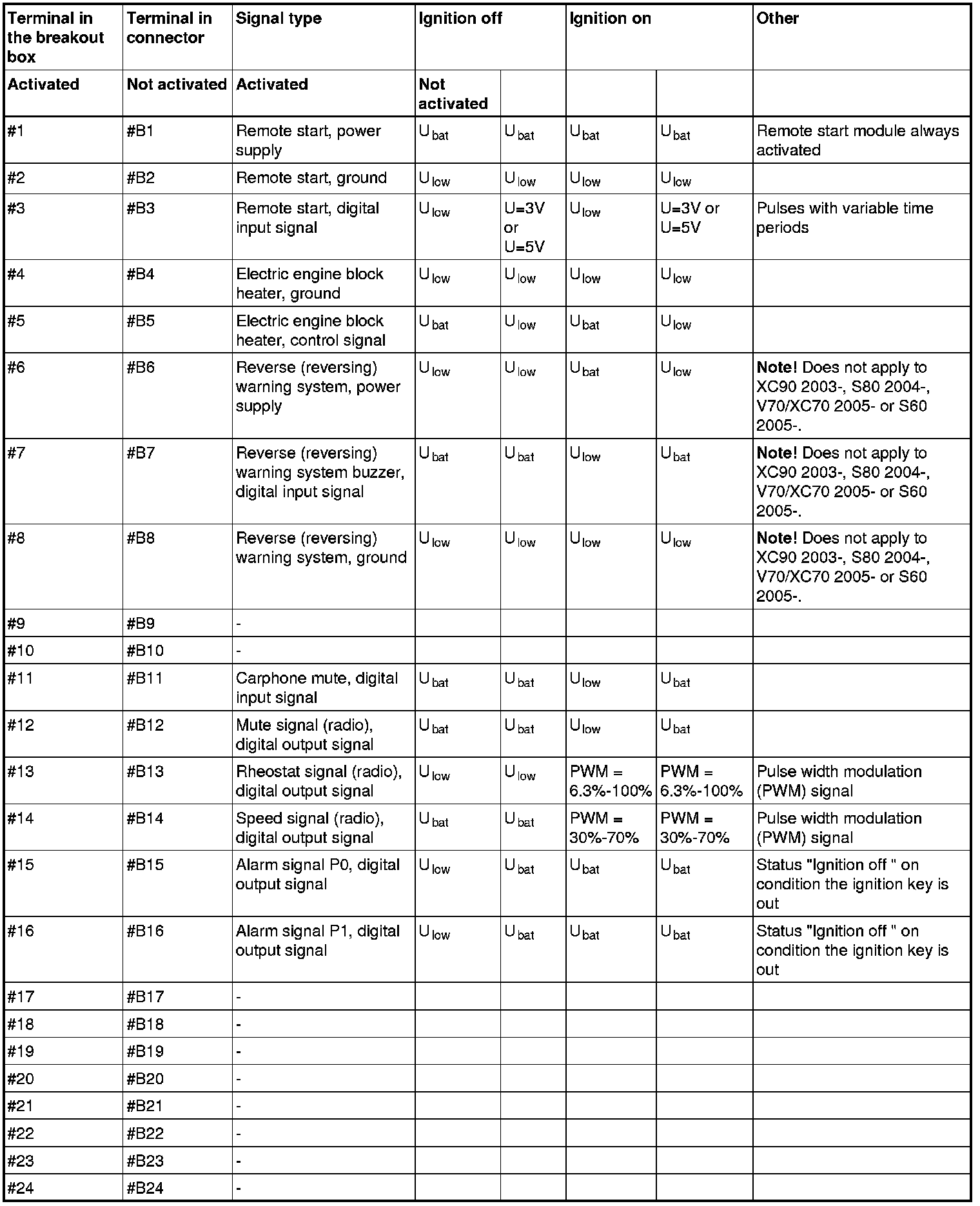 Signal description. Accessory electronic module (AEM)