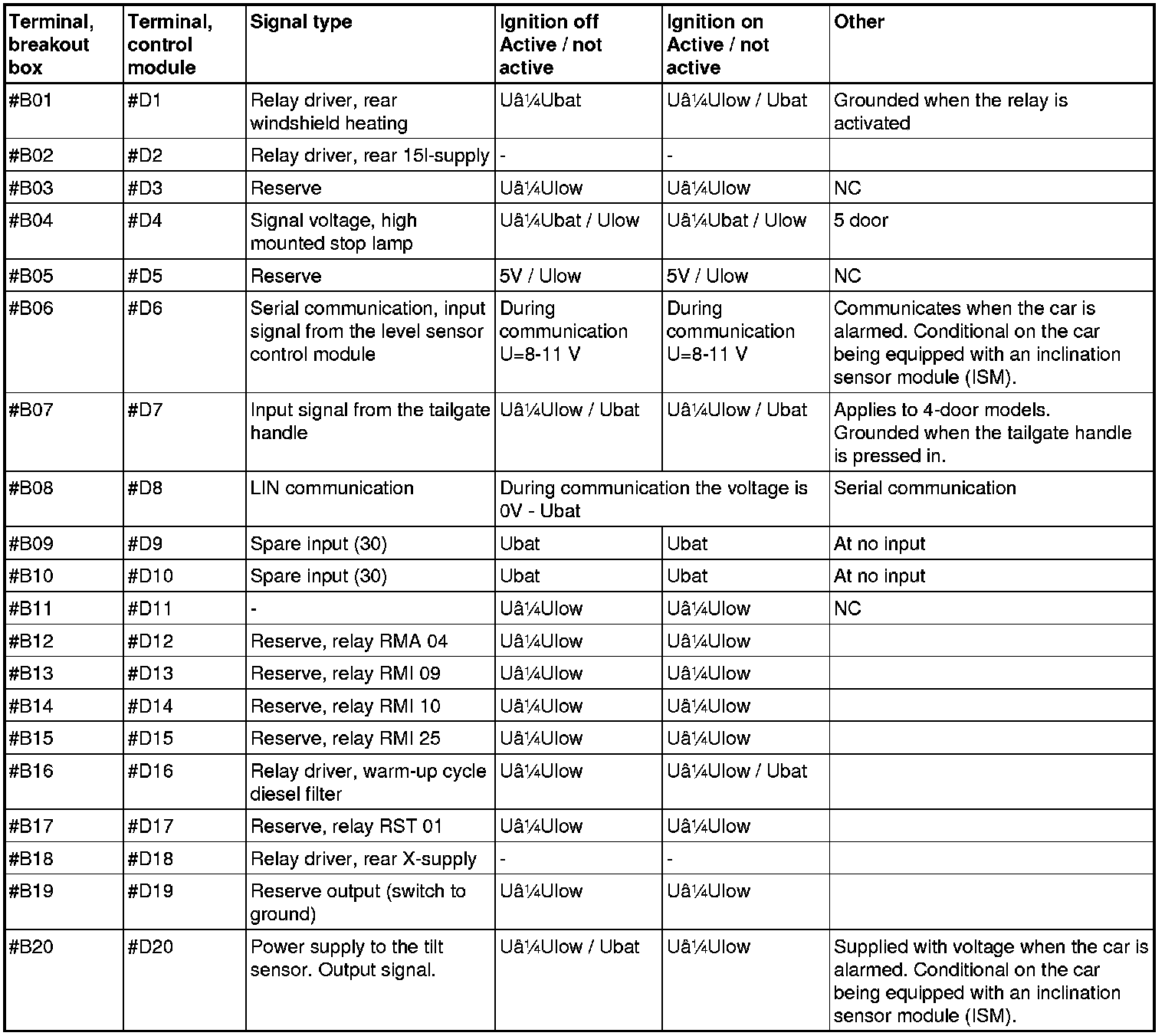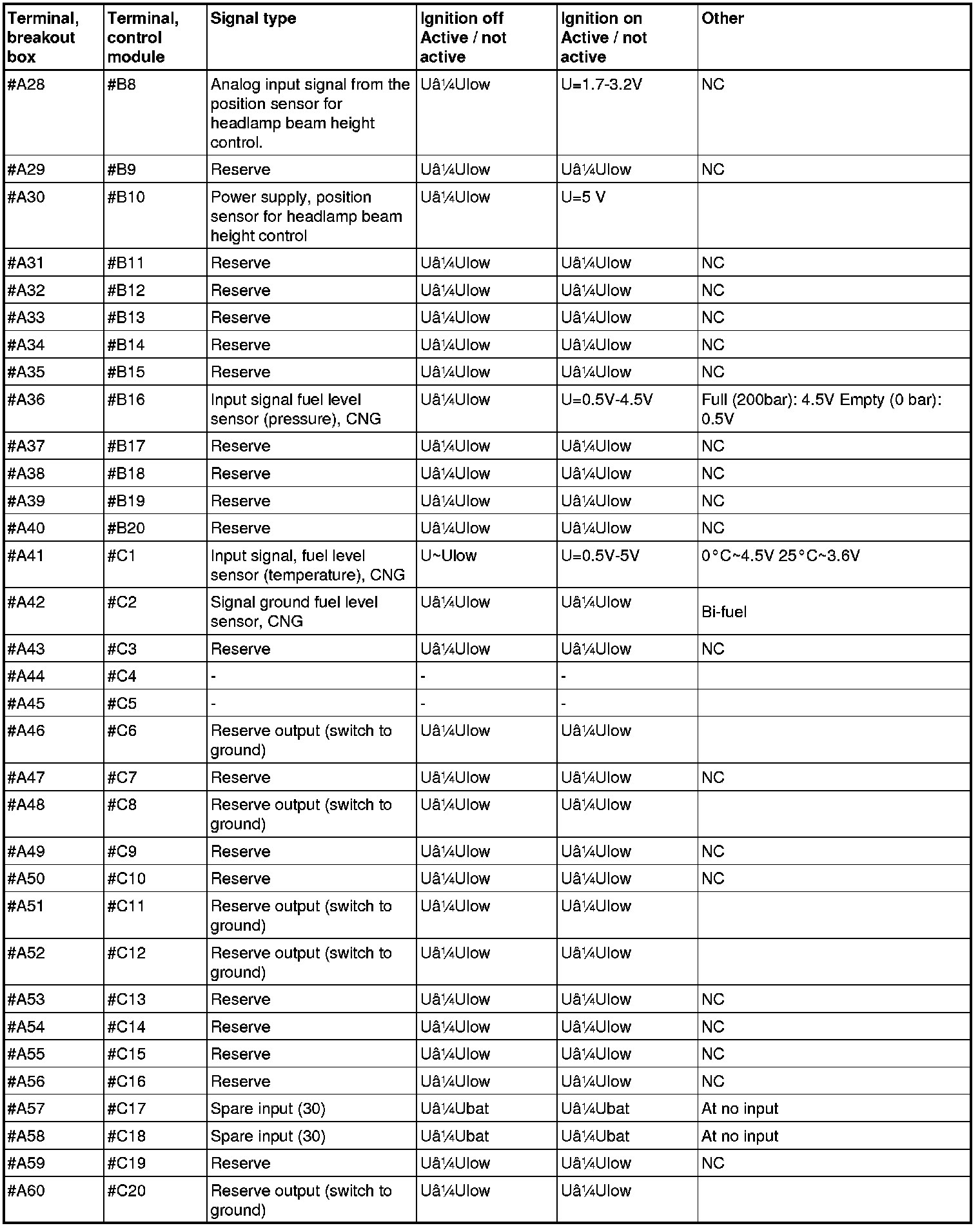 The following values are measured between the relevant terminal and terminal #E1 (power ground) unless otherwise stated.
