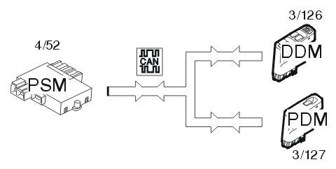 If the car was built in structure week 9950 or later, the car has door mirrors with memories. When the desired memory button is pressed, the mirrors and seat are set to the desired positions. Data is sent from the power seat module (4/52) to the passenger door module (3/126) (3/127) to set the door mirrors to the programmed position. The memory positions of the door mirrors are stored in the driver's door module (DDM) (3/126) and passenger door module (PDM) (3/127). When setting a new mirror position, this is stored in each control module. The position of the driver's door mirror is stored in the driver door module (DDM). The position of the passenger door mirror is stored in the passenger door module (PDM).