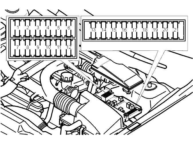 - For integrated relay / fuseboxes with 21 fuses, see Integrated relay / fusebox in engine compartment Integrated Relay/Fusebox, Engine Compartment, Replacing