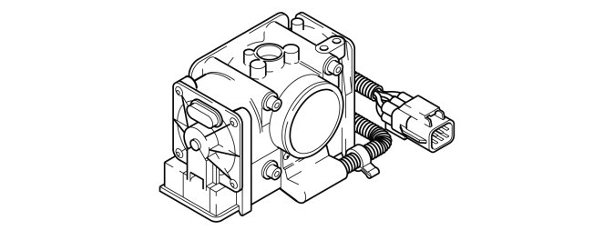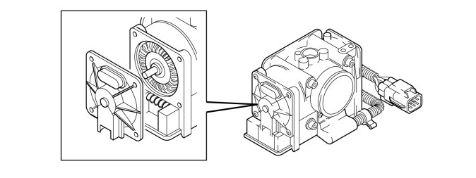 In one end the throttle unit contains a stepless torque motor that is directly operated on the throttle spindle. The torque motor is supplied with 12 V and controlled by the Electronic throttle module (ETM). In the other end there is the throttle's spring unit and the mechanical stop for the smallest and largest throttle openings.