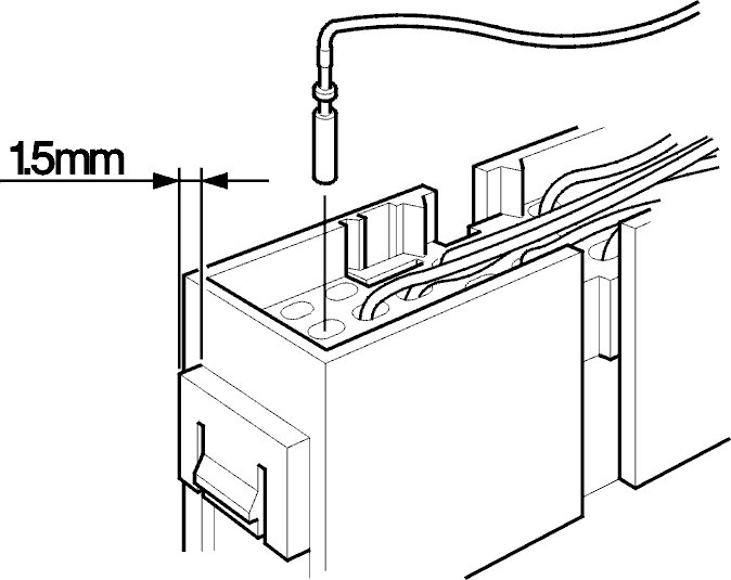 - Insert the new cable terminal in the housing from the cable side in the correct cavity. A "click" can be heard when the terminal is pushed fully home.