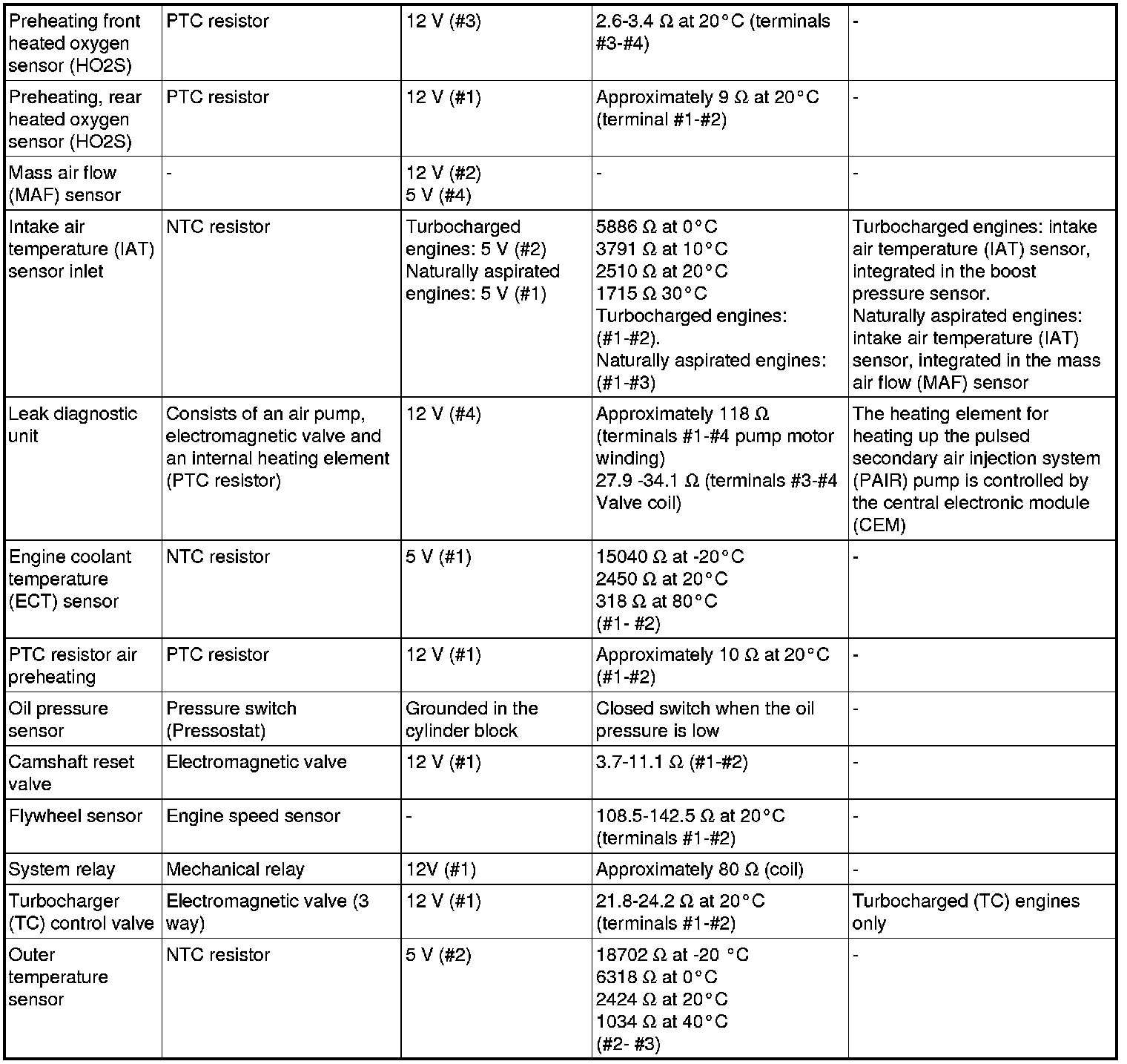 The component specification gives the value of the component when the connector is disconnected. Where no value is given, it is not possible to measure a relevant value at the component.