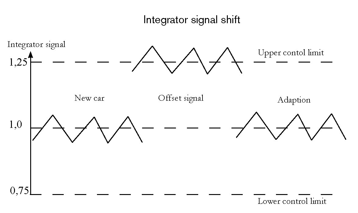 The fuel injection system has a function which compensates for changes in the lambda (lambda) control which occur slowly over its service life. It is called lambda adaptation and its purpose is to keep the integrator signal within its limits of control (see figure below).