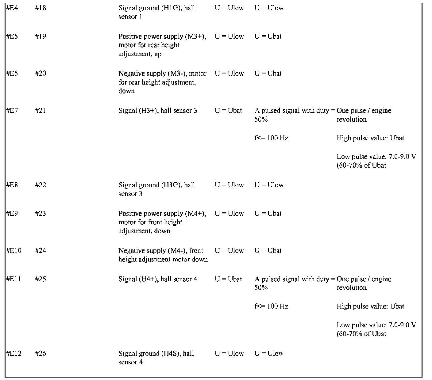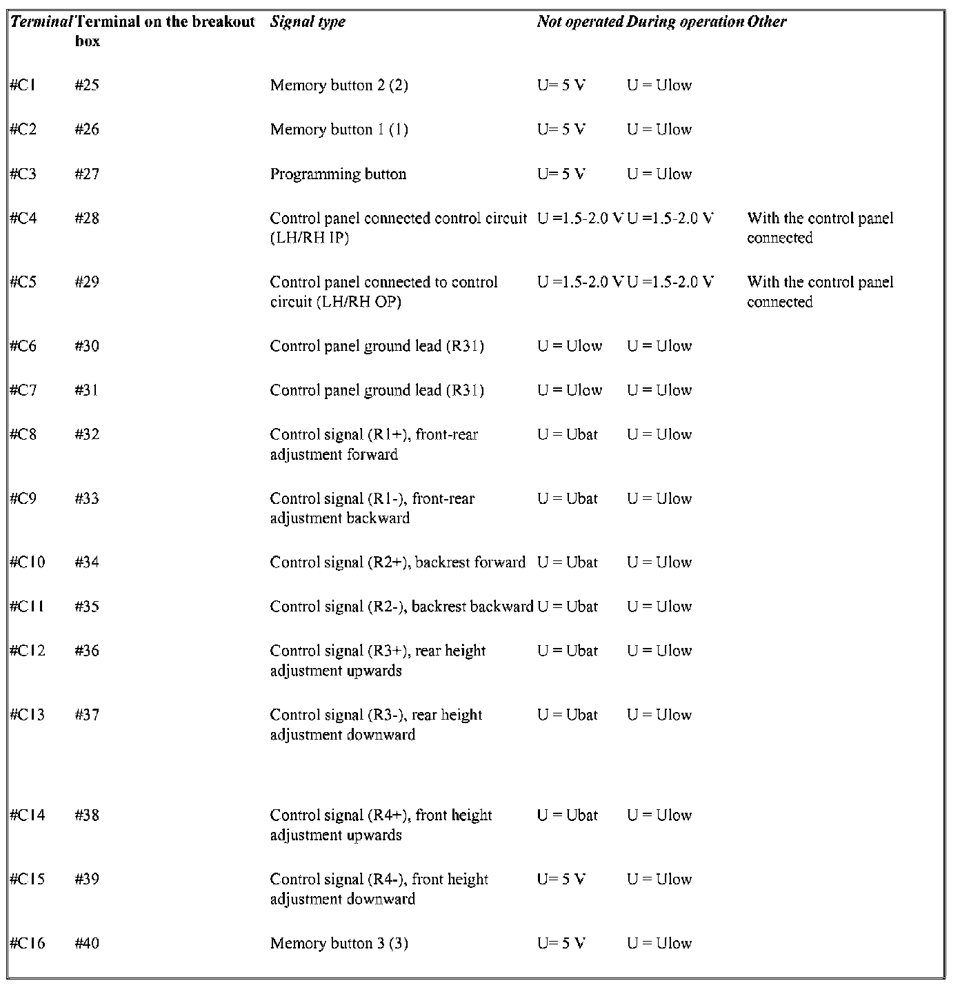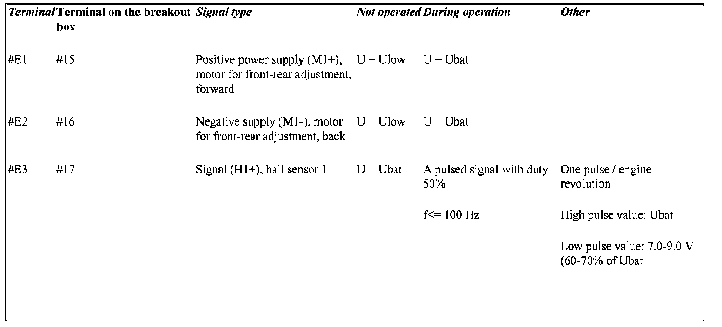 Signal Specification, Power Seat Module