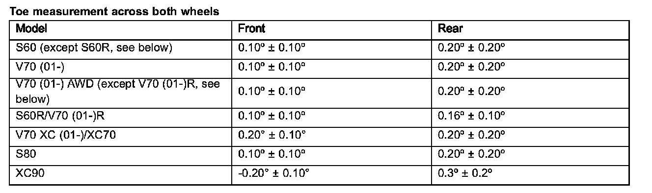 Note! All published toe values are for total toe measurement (left and right wheels together).