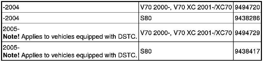 Note! Vehicles up to and including model year 2004 must be loaded with Steering wheel module (SWM) software. Vehicles from and including model year 2005 must only be loaded with Steering wheel module (SWM) software if the vehicle has DSTC.