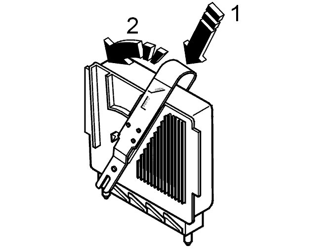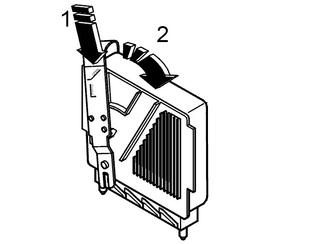 Insert tool 999 5722 Wrench 999 5722 Wrench (1) in the car around the control module. Move the upper section of the tool backwards as far as it will go (2). Pull up the tool.