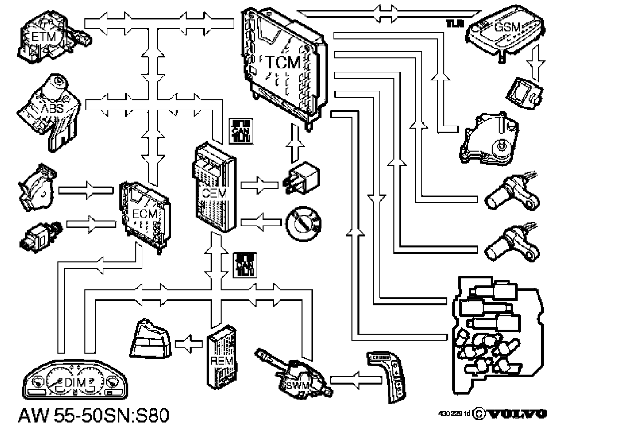- Gear selector module (GSM) - Provides the transmission control module (TCM) with information about the Geartronic mode and winter mode (W) amongst others.