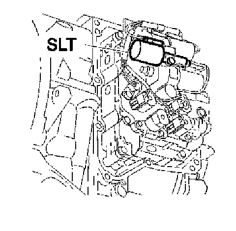 The line pressure solenoid, SLT is in the transmission control system, which is mounted on the front edge of the transmission. The line pressure solenoid, SLT consists of an electric coil which controls a hydraulic valve. The solenoid is controlled by pulse width modulation (PWM) voltage and is grounded via the control module. The solenoid is linear. The hydraulic valve is controlled by the varied current which is the result of the current pulse conditions. During high pulse conditions, (at high currents (approximately 1 A)) the line pressure is low. During low pulse conditions (at low currents) the line pressure is high. The solenoid also engages and disengages neutral control. In the event of an open-circuit the line pressure reaches maximum which causes hard shifting. The hydraulic valve is then completely open. There are diagnostics for the solenoid.