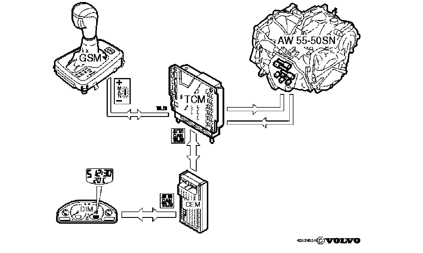 - MAN Manual shifting. There are three hall sensors on the gear selector module (GSM). A permanent magnet on the gear selector lever affects the output signals of the sensors to the gear selector module (GSM).