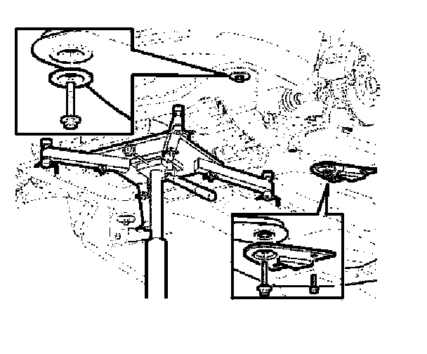 Remove the sub-frame screws together with the accompanying brackets and washers.