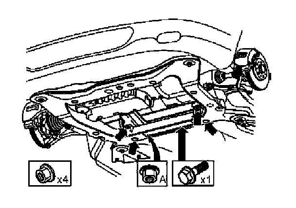 Install the four screws for the sub-frame. Use new screws. Do not tighten yet.