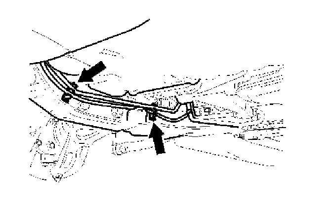 Remove the fuel line for the engine block heater (if applicable) on the sub-frame from the snap fasteners.