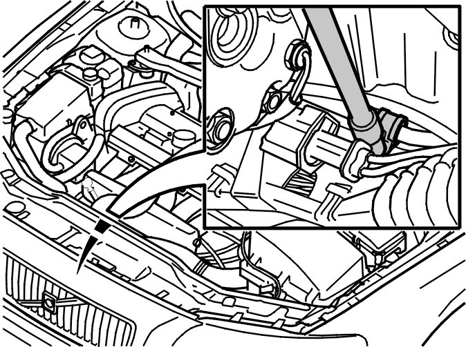 Hang up the engine block heater secured on the left-hand side of the sub-frame, if applicable.