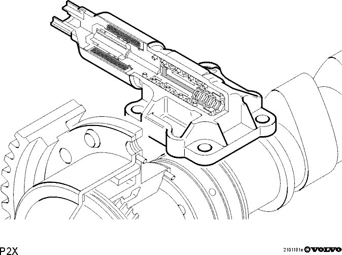 The pressure regulators in the boost pressure control (BPC) valves are affected when the pressure rises. When the boost pressure has increased to the maximum permissible value, the boost pressure control (BPC) valves open. Some of the exhaust gases pass the turbine in the turbocharger (TC), limiting the boost pressure.