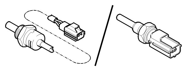 The sensor is a negative temperature coefficient (NTC) type which is supplied with power from the control module (signal) and is grounded in the control module.