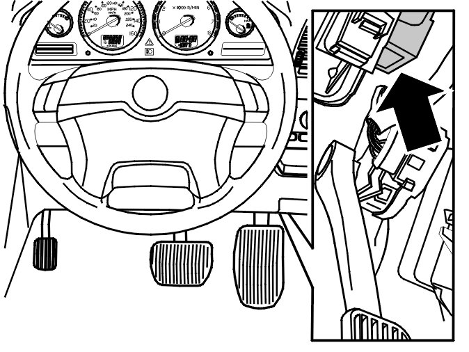 Remove the soundproofing panel on the driver's side. See Soundproofing panel, replacing Soundproofing Panel, Replacing.