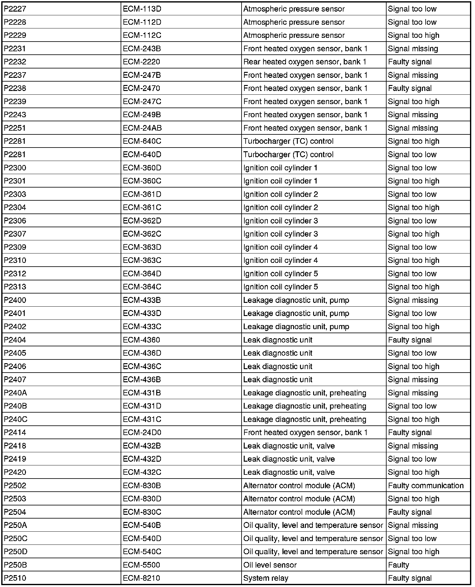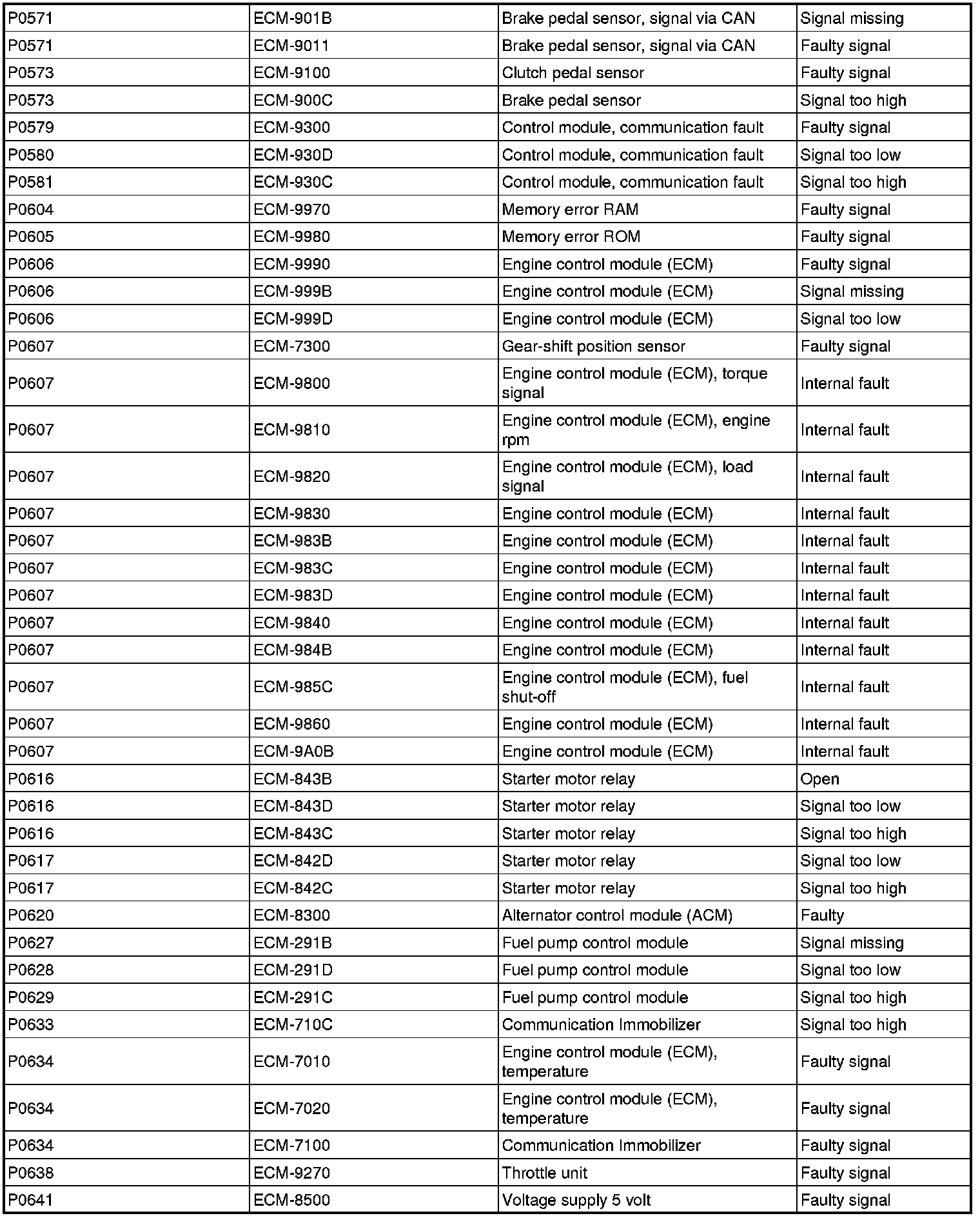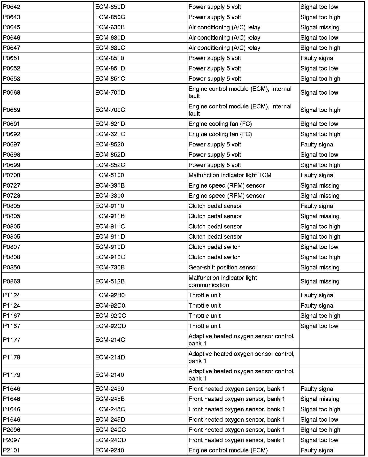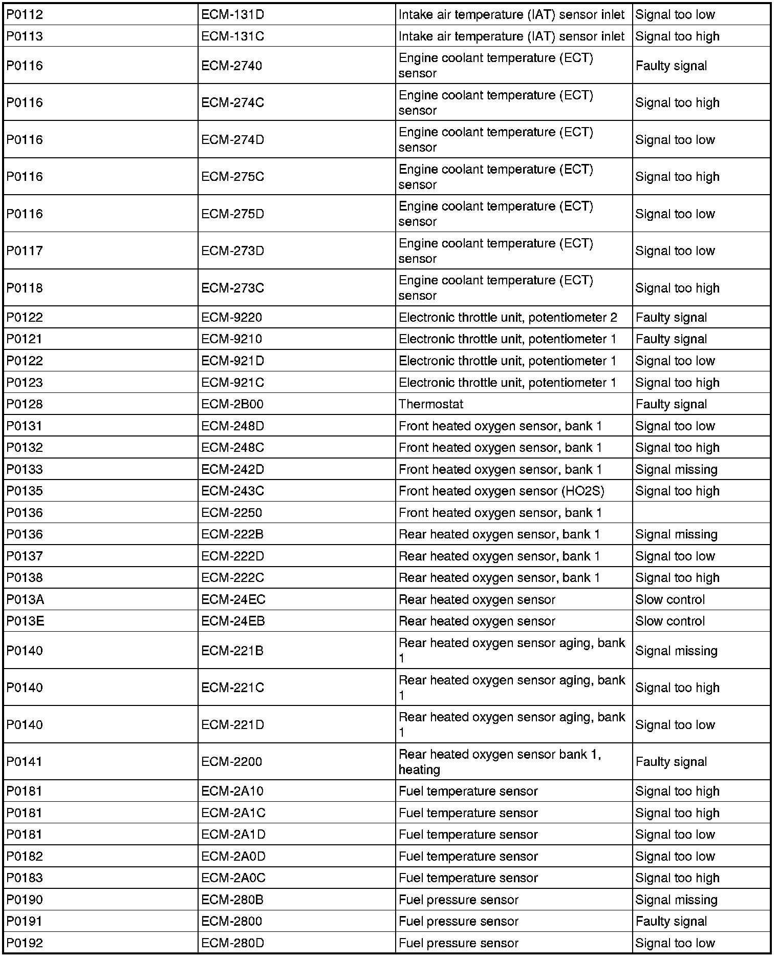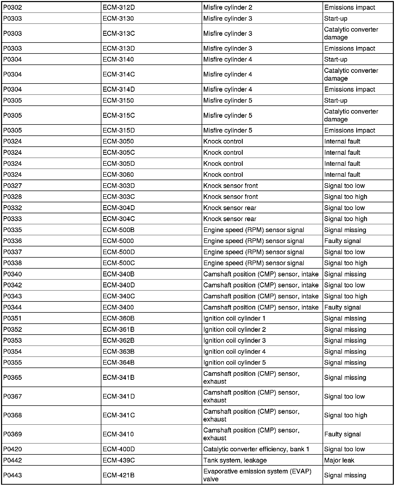 The table below is a conversion table between standardized diagnostic trouble codes (DTCs) (SAE/ISO) and the equivalent Volvo diagnostic trouble codes (DTCs) (DII).
