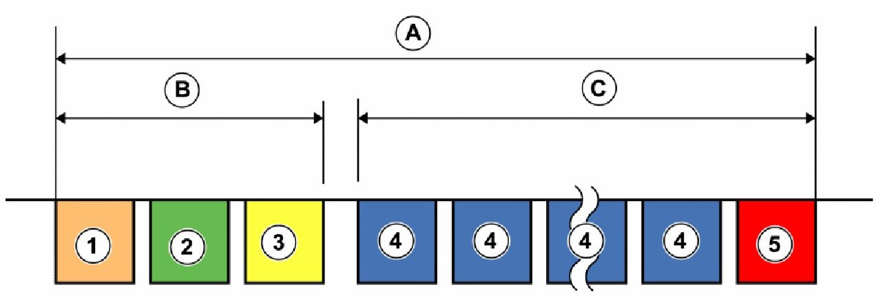 The numbers in the different fields correspond to the parts of the message described in the list above.
