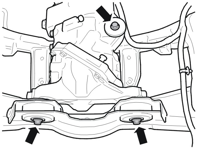Note! Make sure that no cables/hoses are loaded or trapped when installing the subframe.