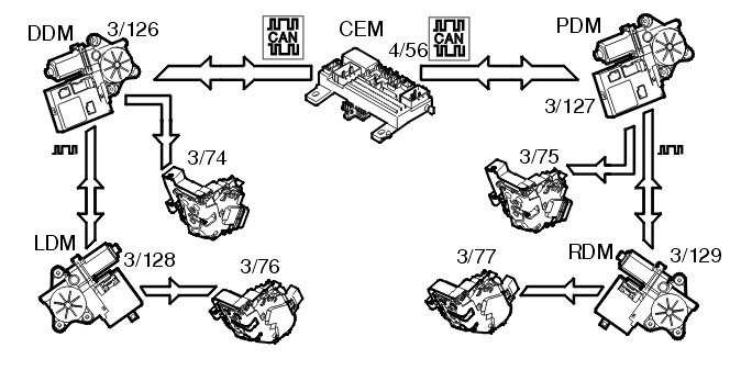A diagnostic trouble code (DTC) is stored in the central electronic module (CEM) if the indication from the lock motors is incorrect or missing, or if deactivation or activation fails. A message is also shown in the driver information module (DIM).
