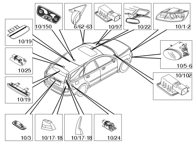 For further information about the interior lighting, see Design and Function, central electronic module (CEM).