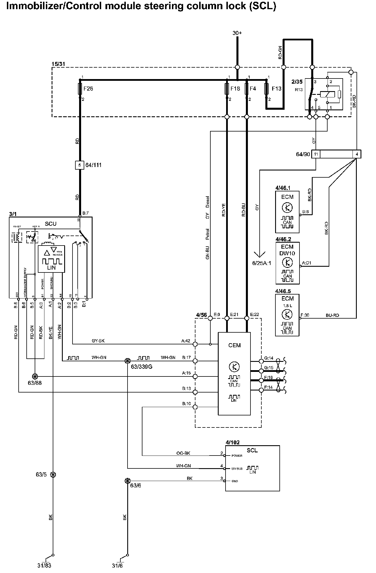 Immobilizer/Control Module Steering Column Lock (SCL):