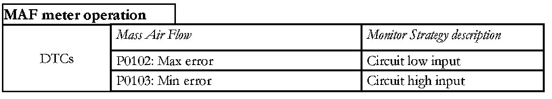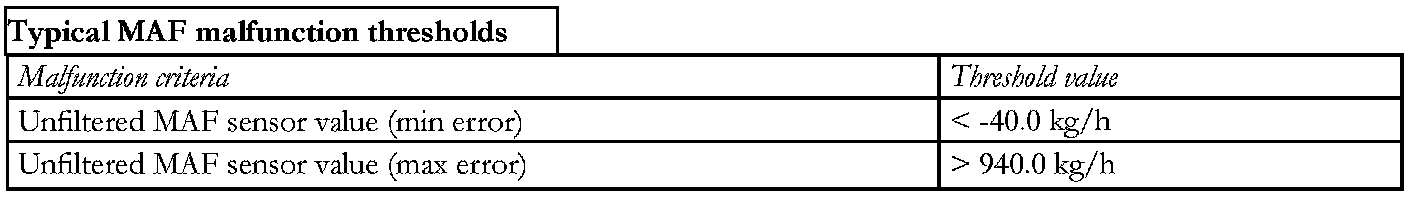 The ECM will adopt substitute (limp home) values if the MAF sensor signal is missing or faulty.
