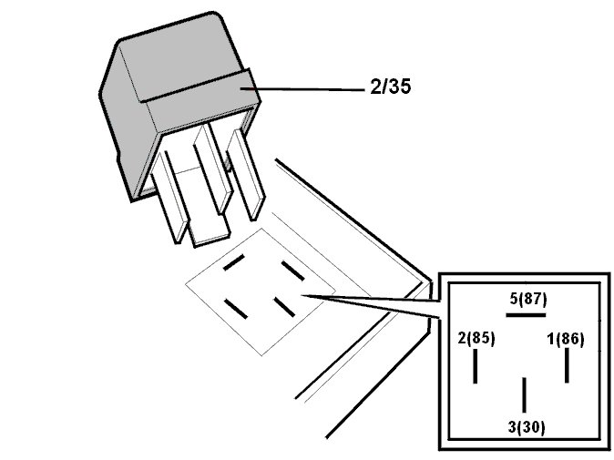 - Temporarily connect two cables to relay base terminal #3(30) and terminal #5(87).