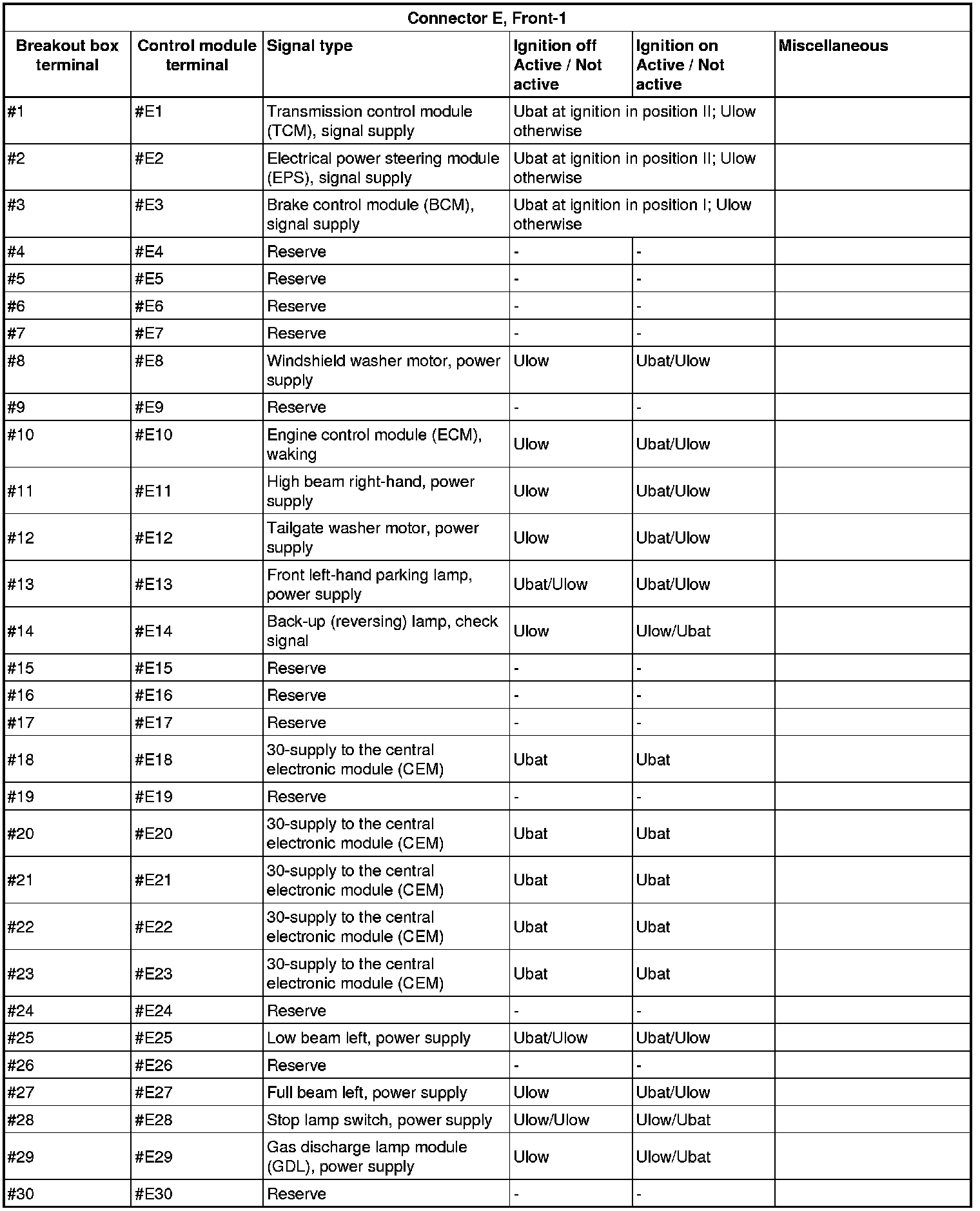 Signal Description, Central Electronic Module (CEM)